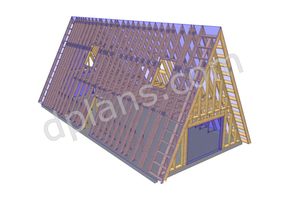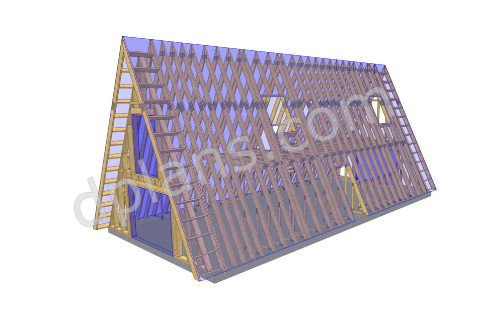 Tipo de estructura: Cabaña con estructura de madera en forma de A y loft