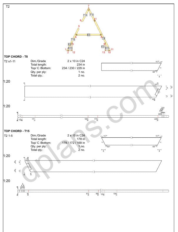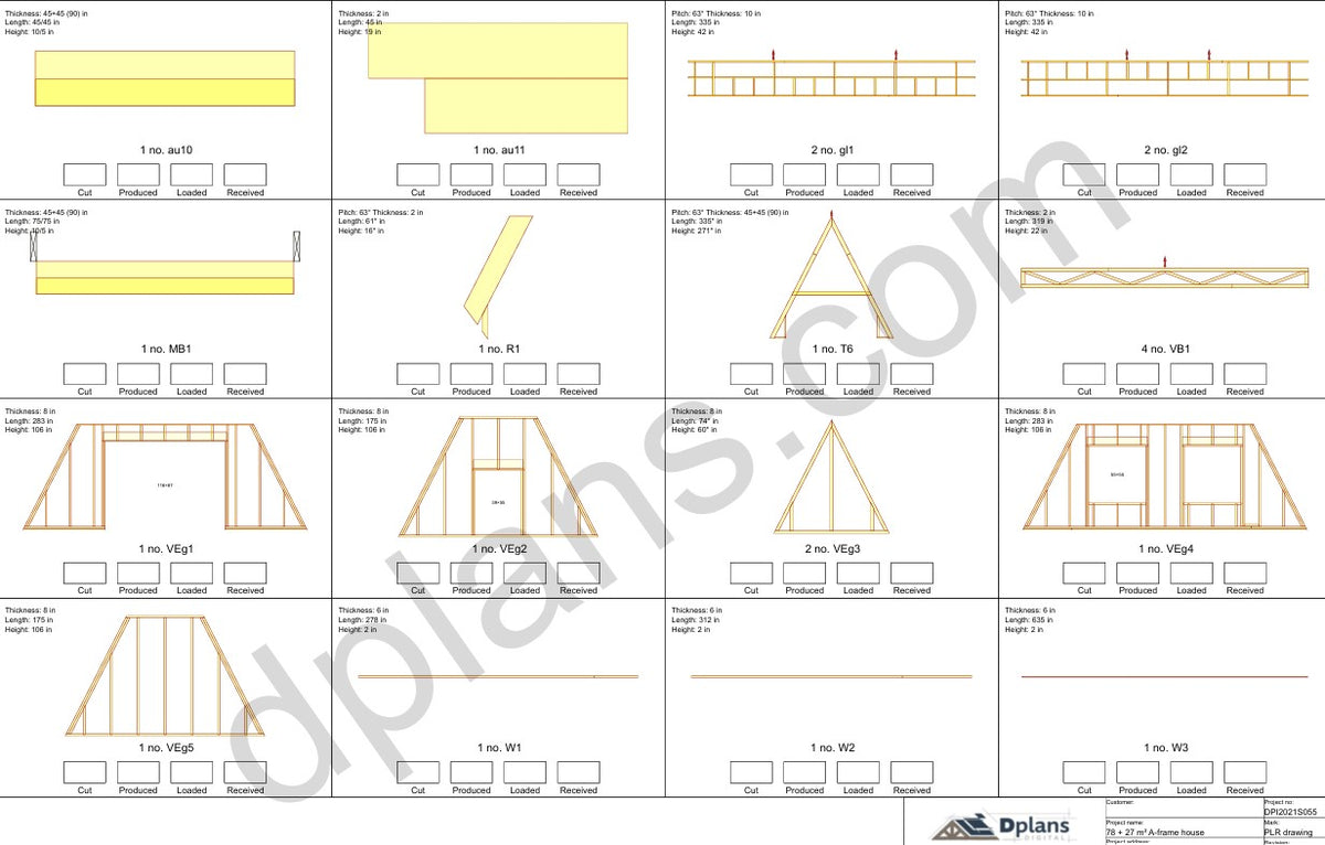 Este plano incluye todo lo necesario para la construcción. Todas las conexiones estructurales están diseñadas con una distribución de carga adecuada mediante el sistema profesional de ingeniería de madera de MiTek.