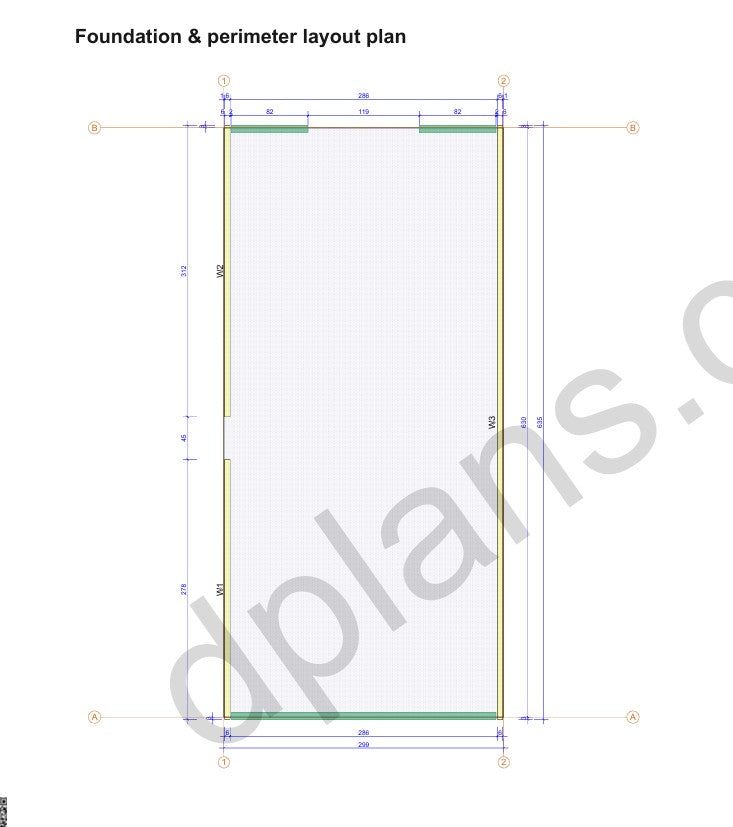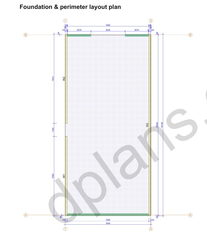 Disposición de la cimentación: Detalles del perímetro y la estructura de soporte con puntos de anclaje