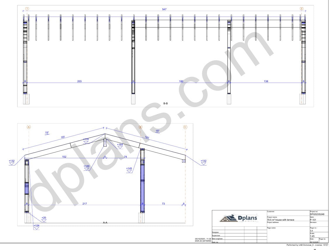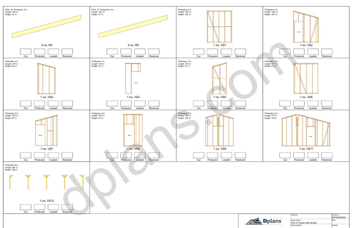 Este plano incluye todo lo necesario para la construcción. Todas las conexiones estructurales están diseñadas con una distribución de carga adecuada mediante el sistema profesional de ingeniería de madera de MiTek.