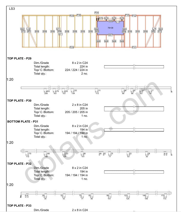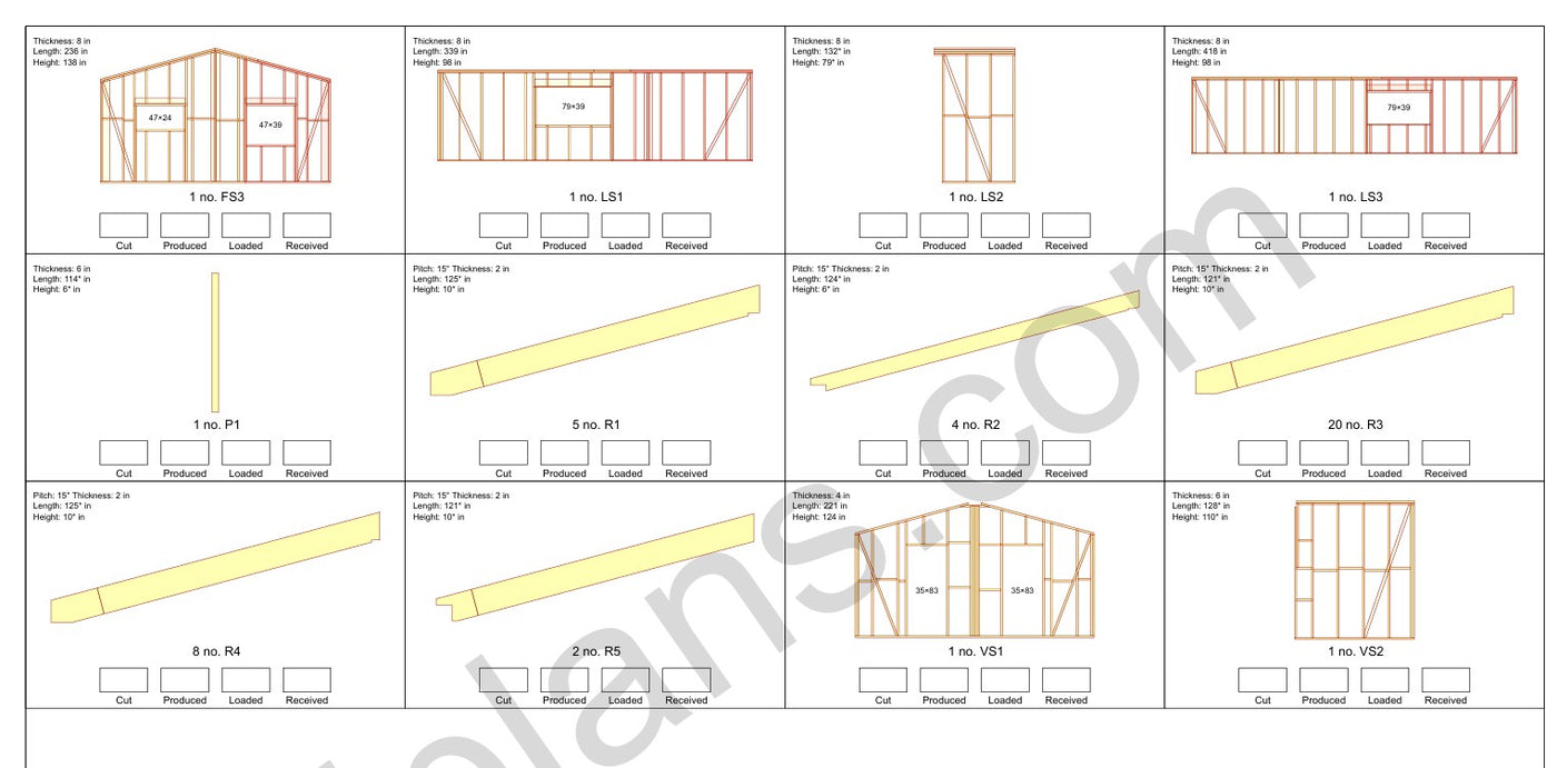 Este plano incluye todo lo necesario para la construcción. Todas las conexiones estructurales están diseñadas con una distribución de carga adecuada mediante el sistema profesional de ingeniería de madera de MiTek.