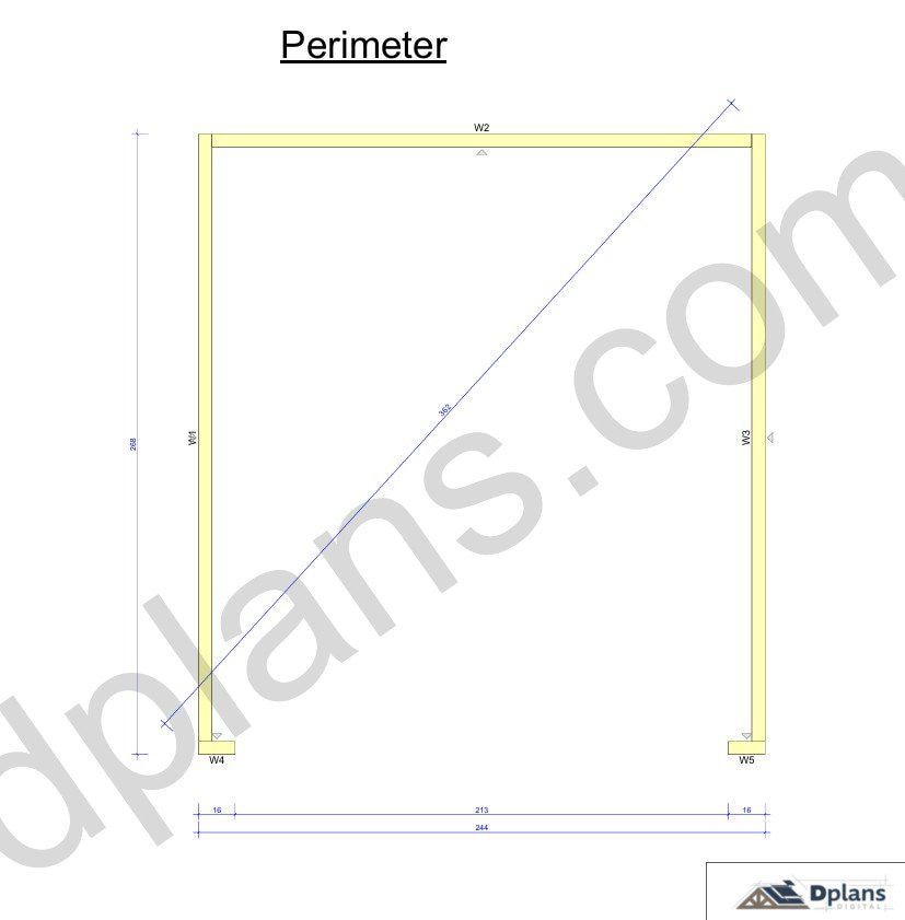* Foundation Layout: Perimeter and support structure details with anchor points