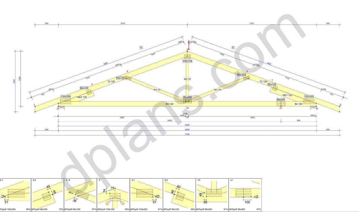 This plan provides everything needed for construction. All structural connections are engineered with proper load distribution using MiTek's professional timber engineering system.