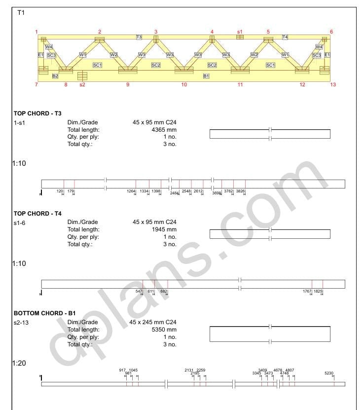 * Cutting Bills: Exact dimensions and angles for every structural member - ready for cutting