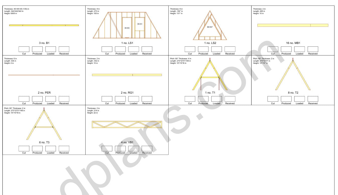 Cutting Bills: Exact dimensions and angles for every structural member - ready for cutting
