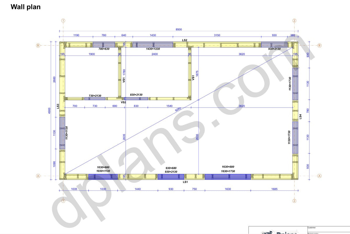 Foundation Layout: Perimeter and support structure details with anchor points